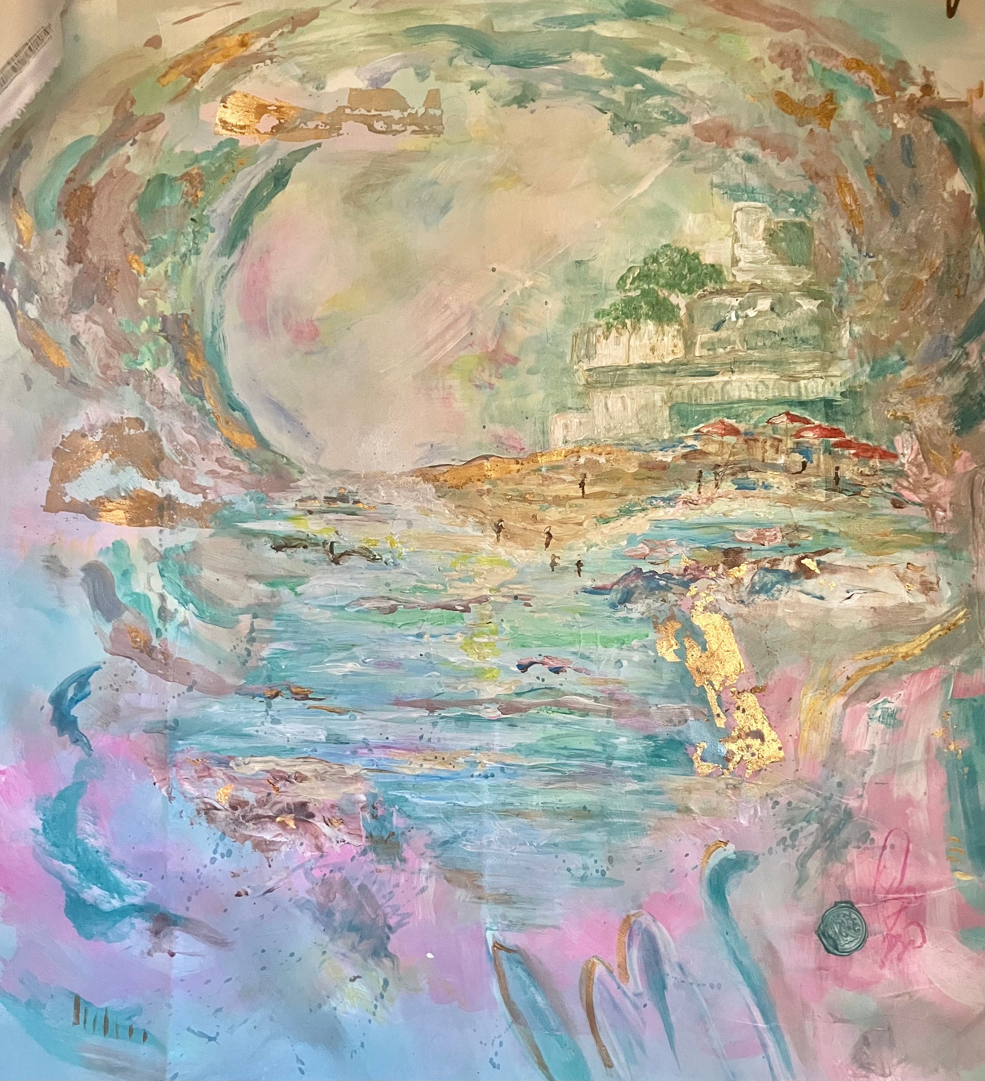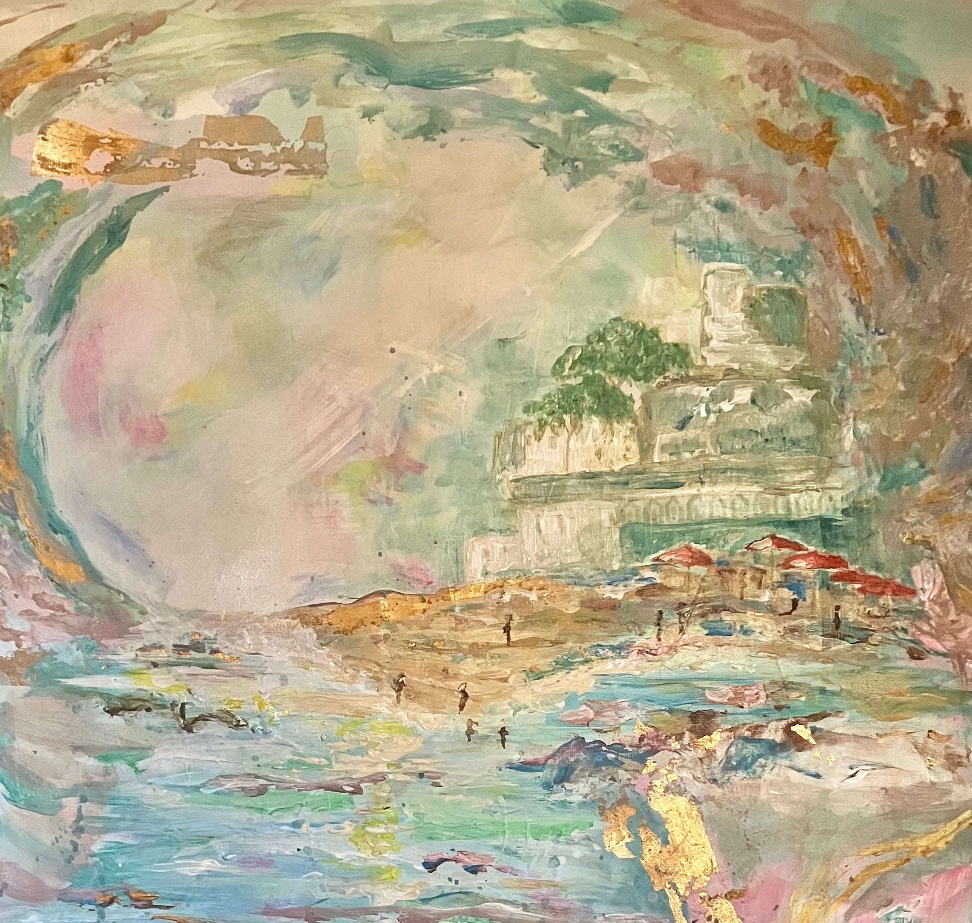 Original baroque painting with gold leaf, gel medium, sea salt, & acrylic’s.