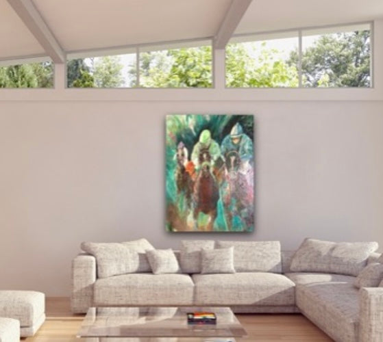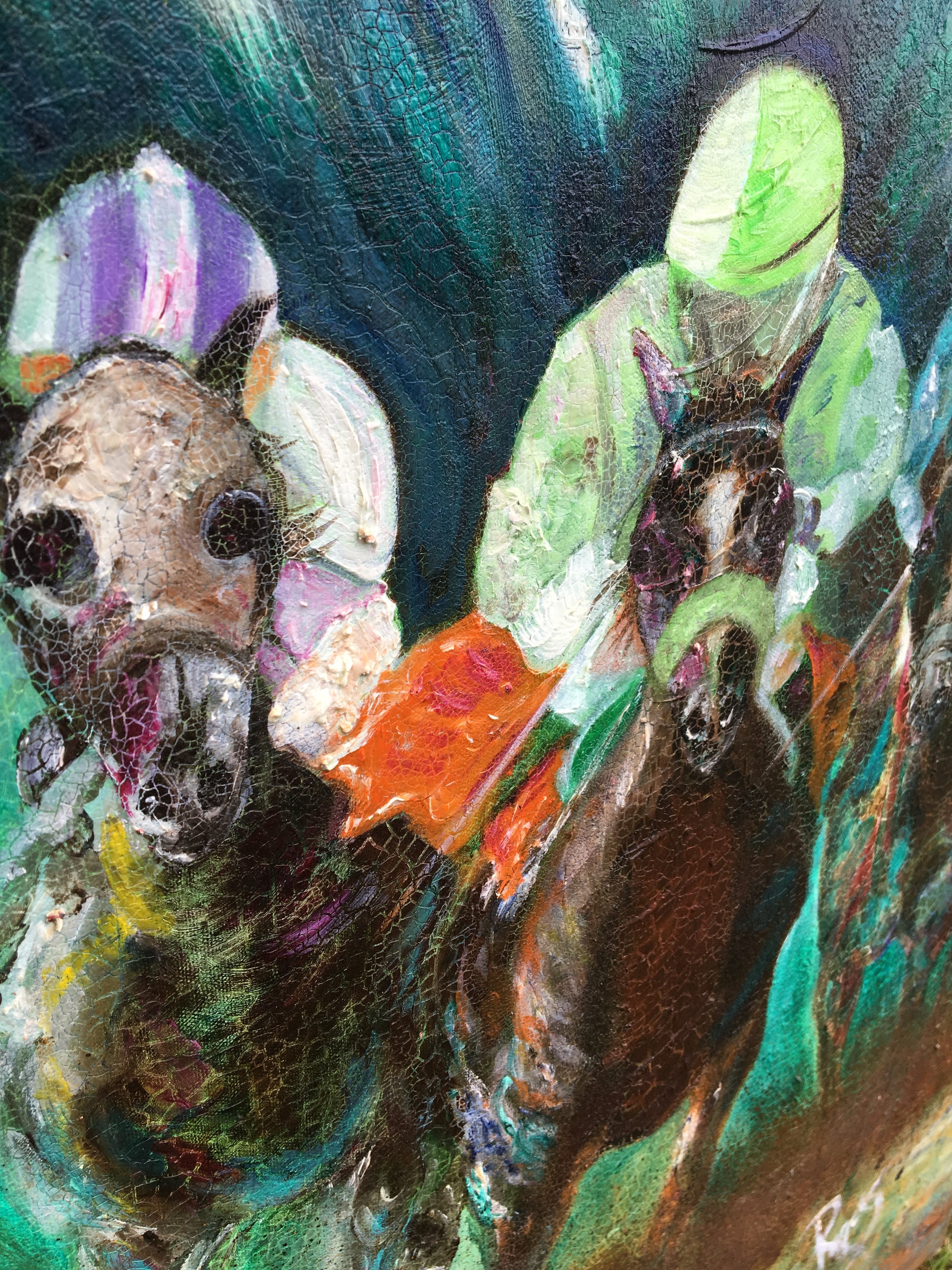 I have been to a lot of horse races, watching these beautiful animals charge down the track, mud flying and the pounding of the ground is so thrilling to watch. This was a painting of how I feel at the races!